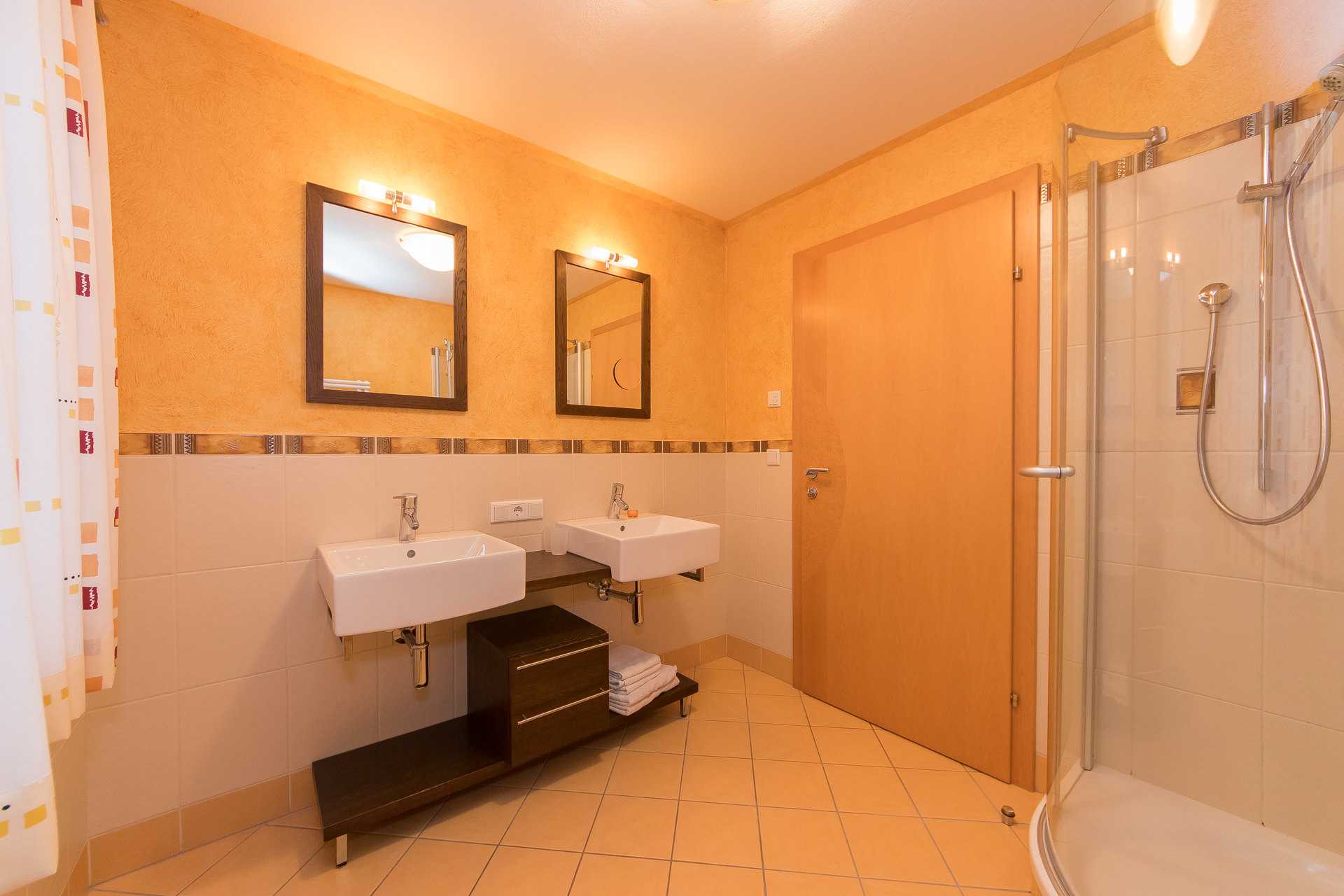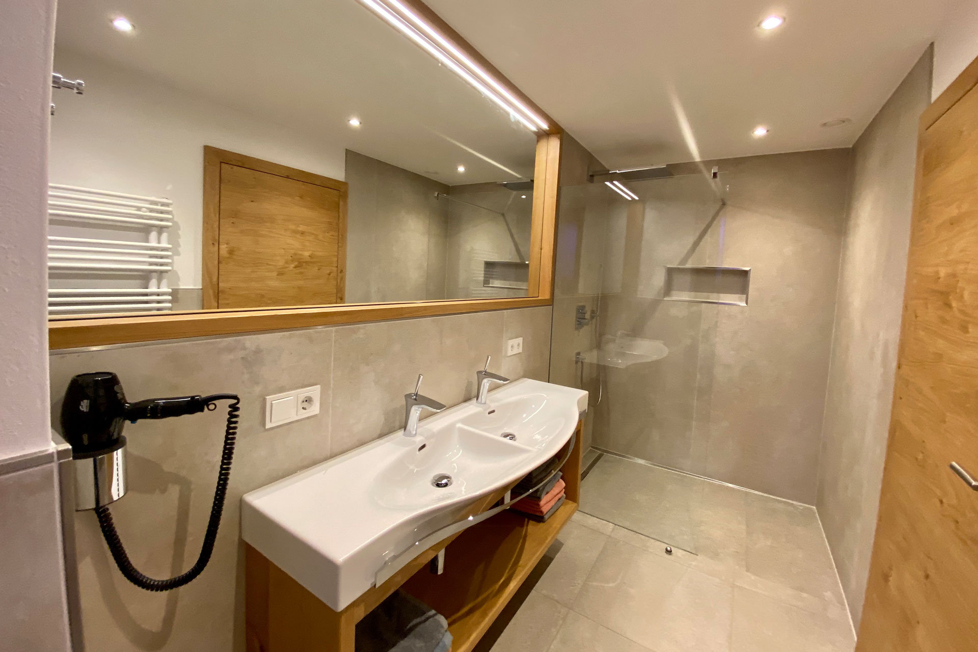 - Bathroom with shower and double sink